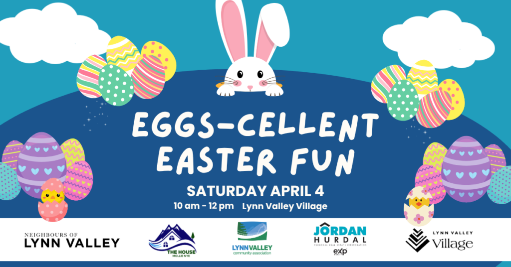 Join Lynn Valley Community Association for lots of free family fun and games on Saturday, April 4, 10 am – noon, at the Lynn Valley Village Plaza. Enjoy an eggs-citing scavenger hunt with prizes for all and a roving magic show.